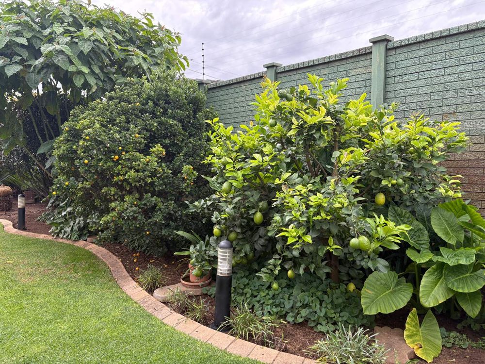 * Wrap-around garden with tool shed, lime and kumquat trees