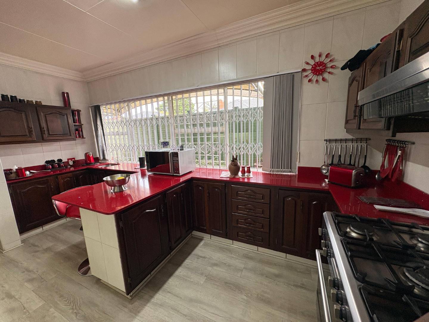 * Three garages (one extra-large, perfect for a bakkie) with electric doors